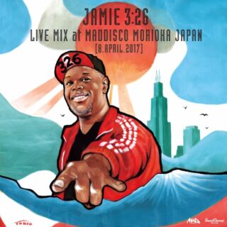 序盤からSOUL.DISCO.HOUSE.RE-EDITを縦横無尽にコントロールし、肝心なポイントではJamie 3:26が得意とする楽曲を熟知しているからこそ出来る感情むき出しのアイソレーターを駆使したイコライジングでさらにオーディエンスを煽る煽る。あの日のプレイはファンキーとしか表現しようのない一夜だった。その選曲はJamie 3:26が長年様々な国、形でシーンをサポートし続けてきた最重要人物だと納得させられる圧巻の内容。ジャケットアートワークには、盛岡公演にてLIVE PAINTを披露し、現在も国内外様々なアーティストの作品を手掛けているTOKIO AOYAMA氏によるアートワーク。